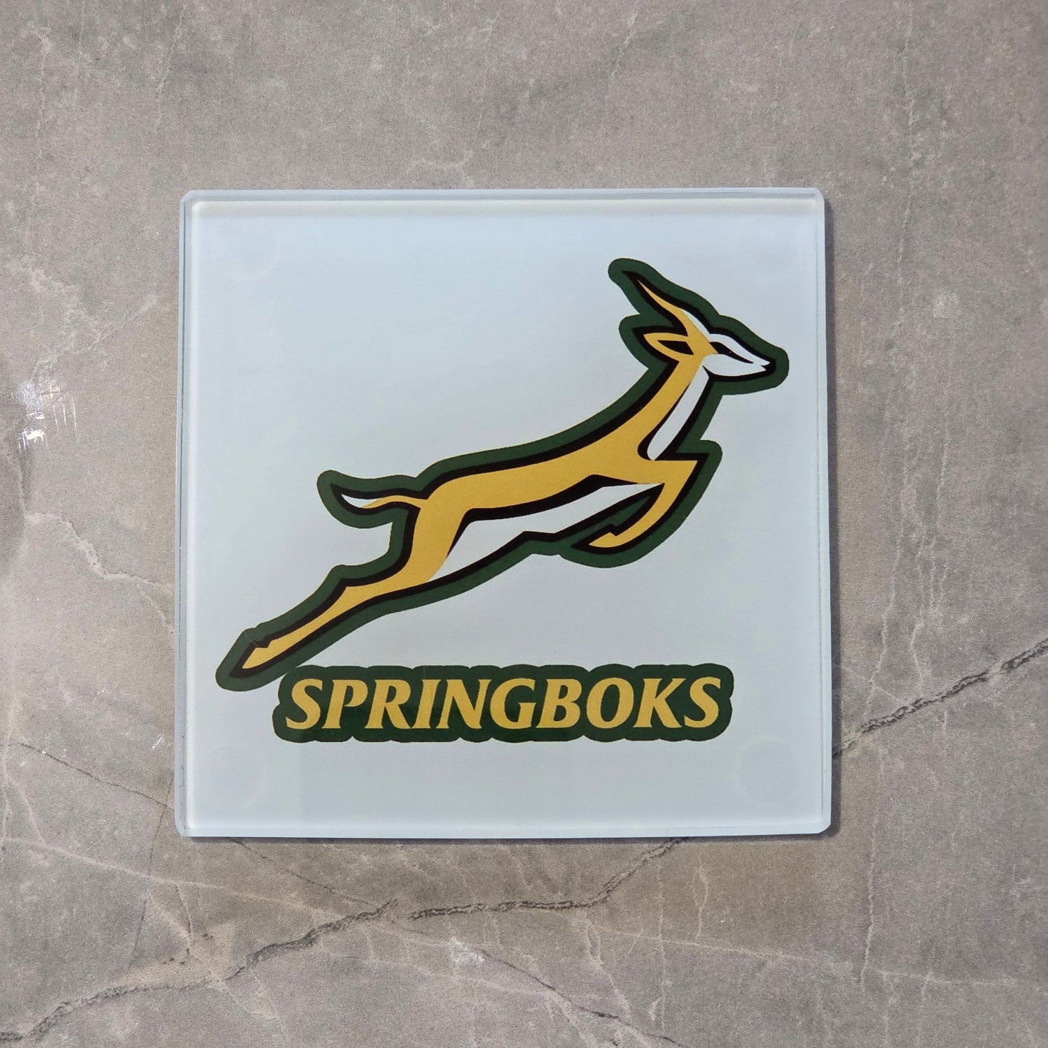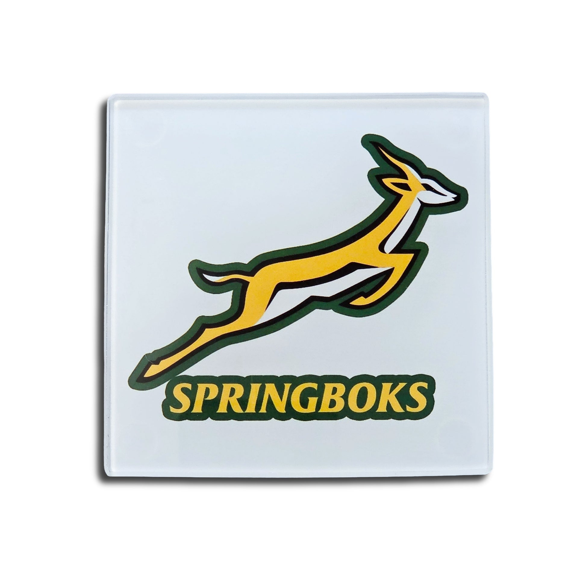 Springboks Rugby Glass Coasters, South Africa National Team Logo, Set of 2, Square, With Rubber Feet